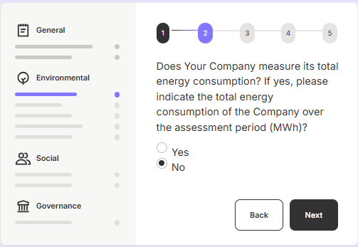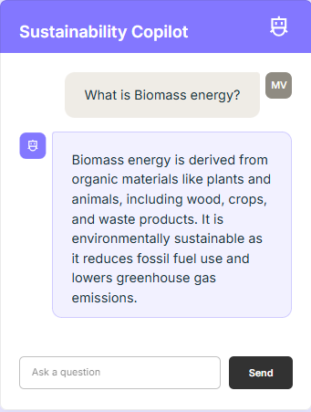 Our Sustainability AI Copilot provides explanations and support at every step. After completing the assessment, you can learn how to improve with our Sustainability ABC resources.